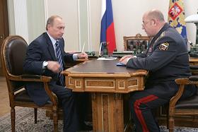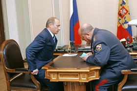 Президент России Владимир Путин (слева) и заместитель министра внутренних дел России Александр…