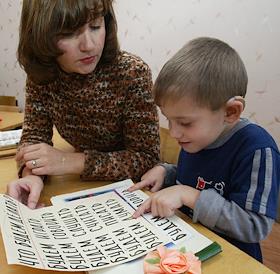 Для Российского фонда помощи (РФП). Школа для неслышащих детей в Тамбове. Занятия в кабинете…