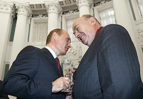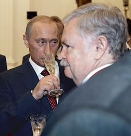 Президент России Владимир Путин (слева) и председатель союза кинематографистов России, кинорежиссер…