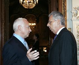 Посол Франции в России Жан Каде (справа) и президент Московского Международного Дома музыки (ММДМ),…