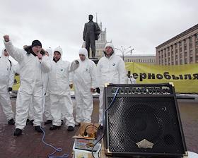Митинг в знак протеста против ввоза радиоктивноой металлопродукции из Чернобыля наТриумфальной площади у памятника Маявковскому