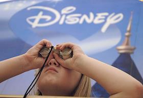 Девочка смотрит в бинокль на "Балу Золушки". Бал был проведен "The Walt Disney (Уолт Дисней)…