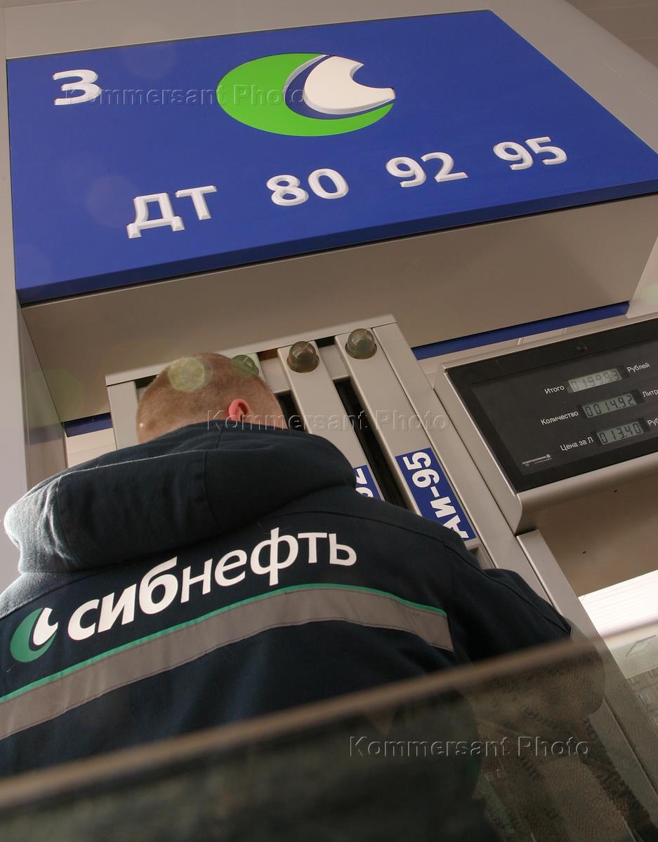 Сотрудник автозаправки "Сибнефть" во время работы. Автозаправка находится на Сормовском шоссе.