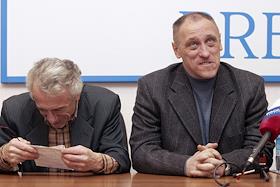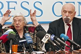 Председатель Хельсинской группы Людмила Алексеева (слева) и правозащитник Валерий Борщев (справа) во…