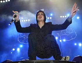 Солист группы "Him" Вилле Вало во время совместного концерта групп "The Rasmus" и "Him" в…