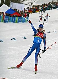 XX зимние Олимпийские игры 2006. Российская биатлонистка Альбина Ахатова в эстафете 4 по 6…