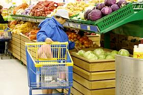 Покупательница у прилавка овощного отдела в Торговом комплексе «ЛЕНТА».