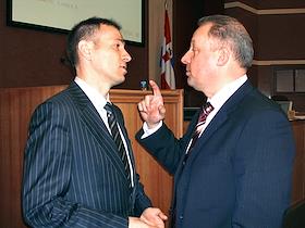 Бывшие кандидаты на пост мэра Перми - депутат Законодательного Собрания Константин Окунев (слева) и…