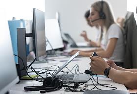 Жанровая фотография. Рекламный баннер оператора связи "Мегафон". Мужчина в костюме разговаривает по…