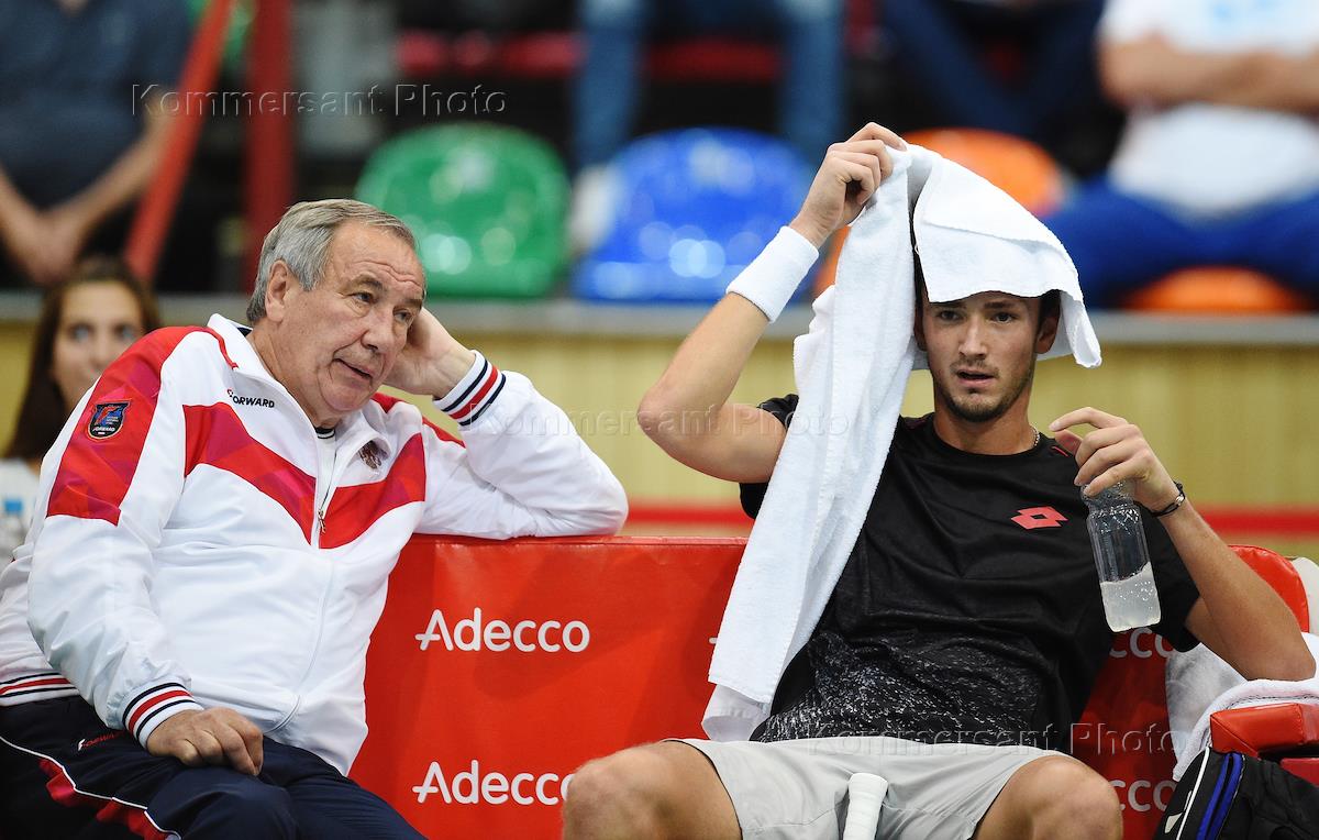 Спорт Матч плей-офф первой группы командного чемпионата мира по теннису "Кубок Дэвиса" между мужскими сборными командами России и Беларуси, в МСА «Лужники».