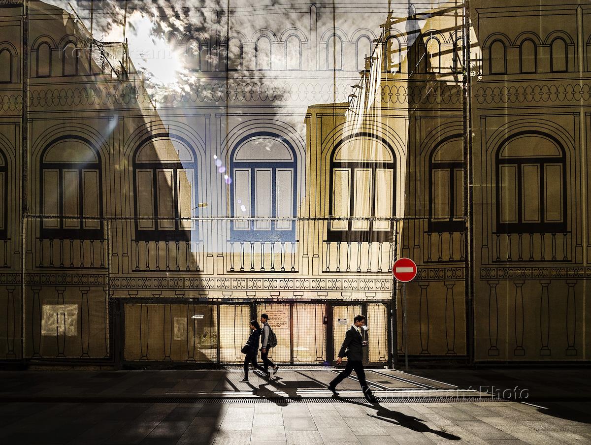 Жанровая фотография. Фотограф и модель во время уличной фотосессии.