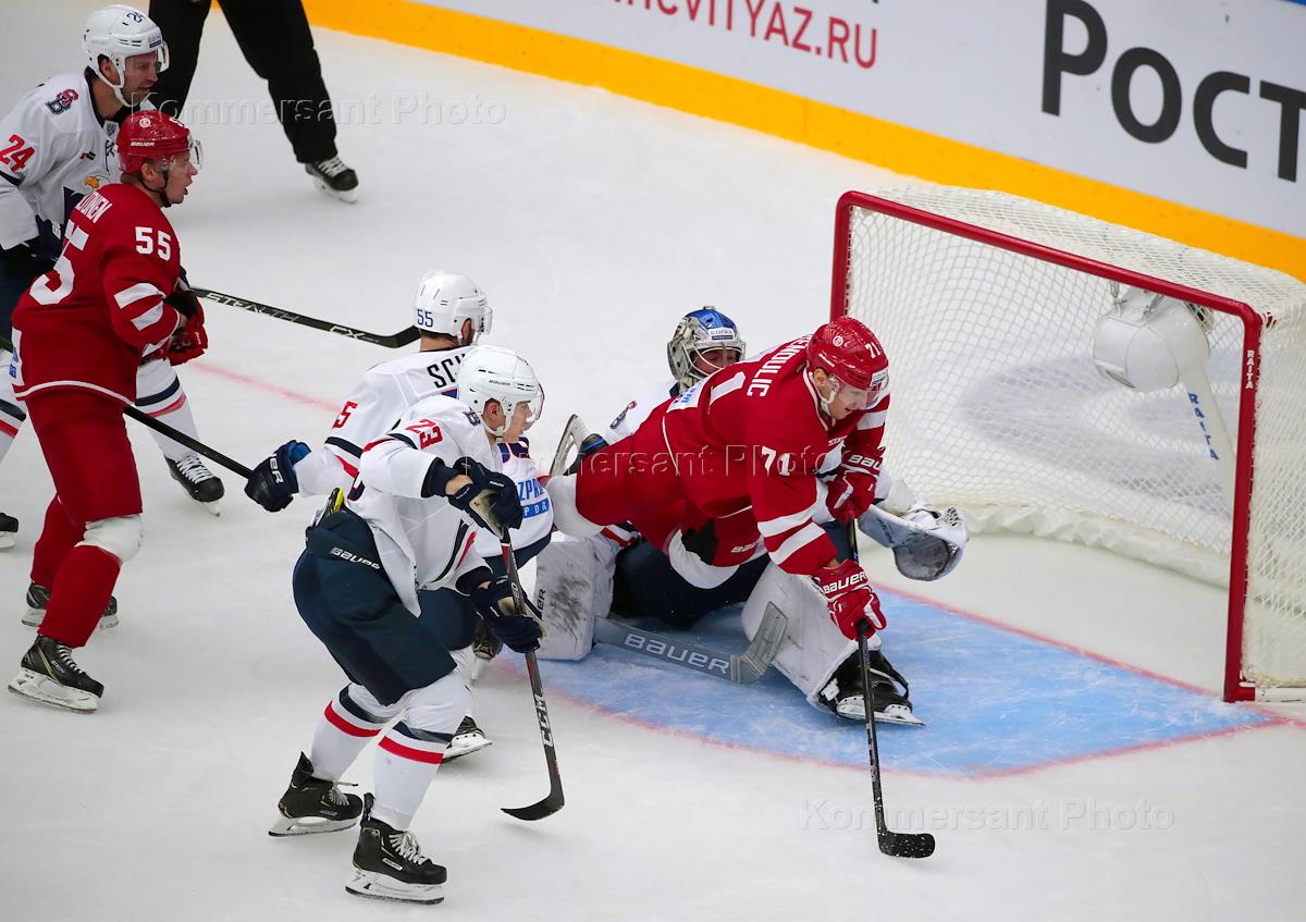 Континентальная хоккейная лига (КХЛ) 2018/2019. Матч между командами "Витязь" (Московская область) и…