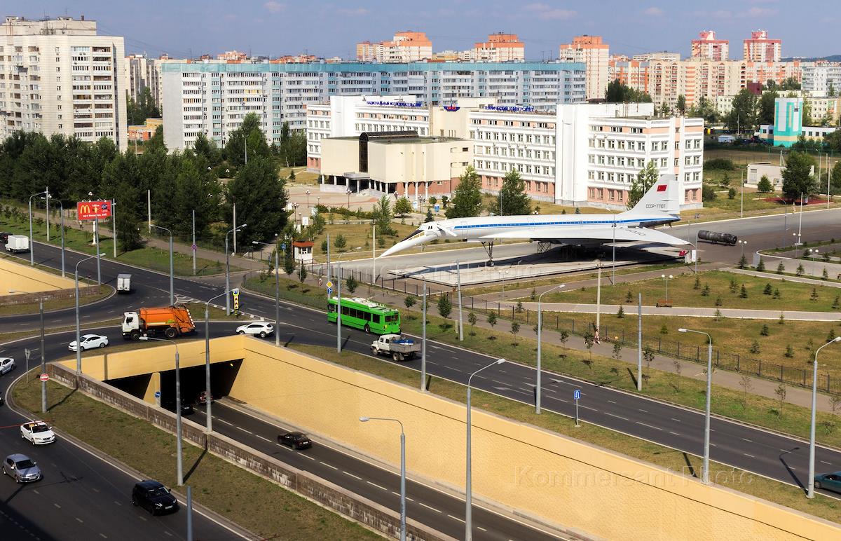 Экономика и бизнес Внешне восстановленный сверхзвуковой пассажирский самолёт Ту-144 на постаменте возле одного из корпусов Казанского авиационного института им. Туполева.