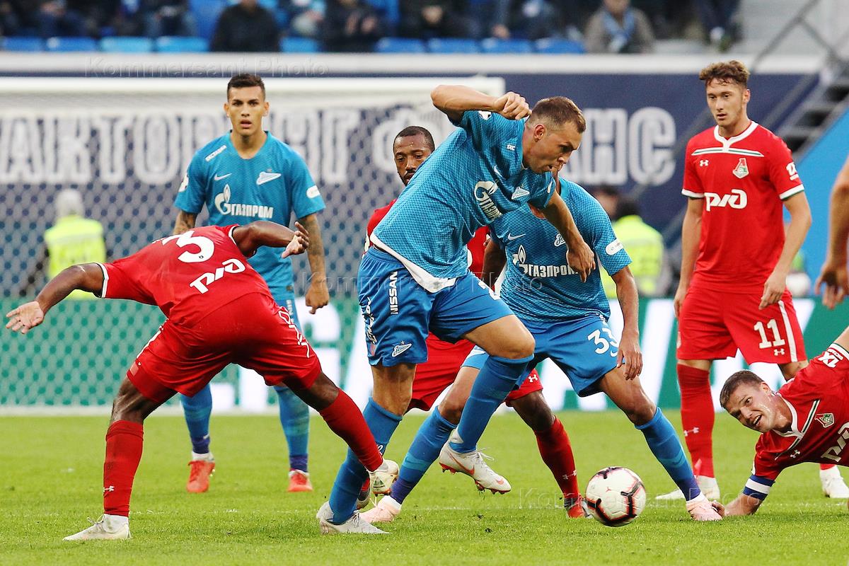 Спорт РПЛ. Чемпионат России по футболу 2018/2019. 8 тур. Матч между командами ФК "Зенит" (Санкт-Петербург) и ФК "Локомотив" (Москва) на стадионе "Санкт-Петербург".