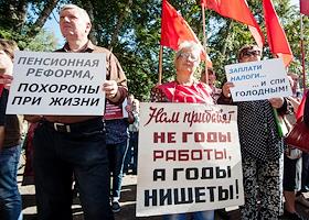 Митинг против пенсионной реформы, организованный Коммунистической партией России (КПРФ) в рамках…