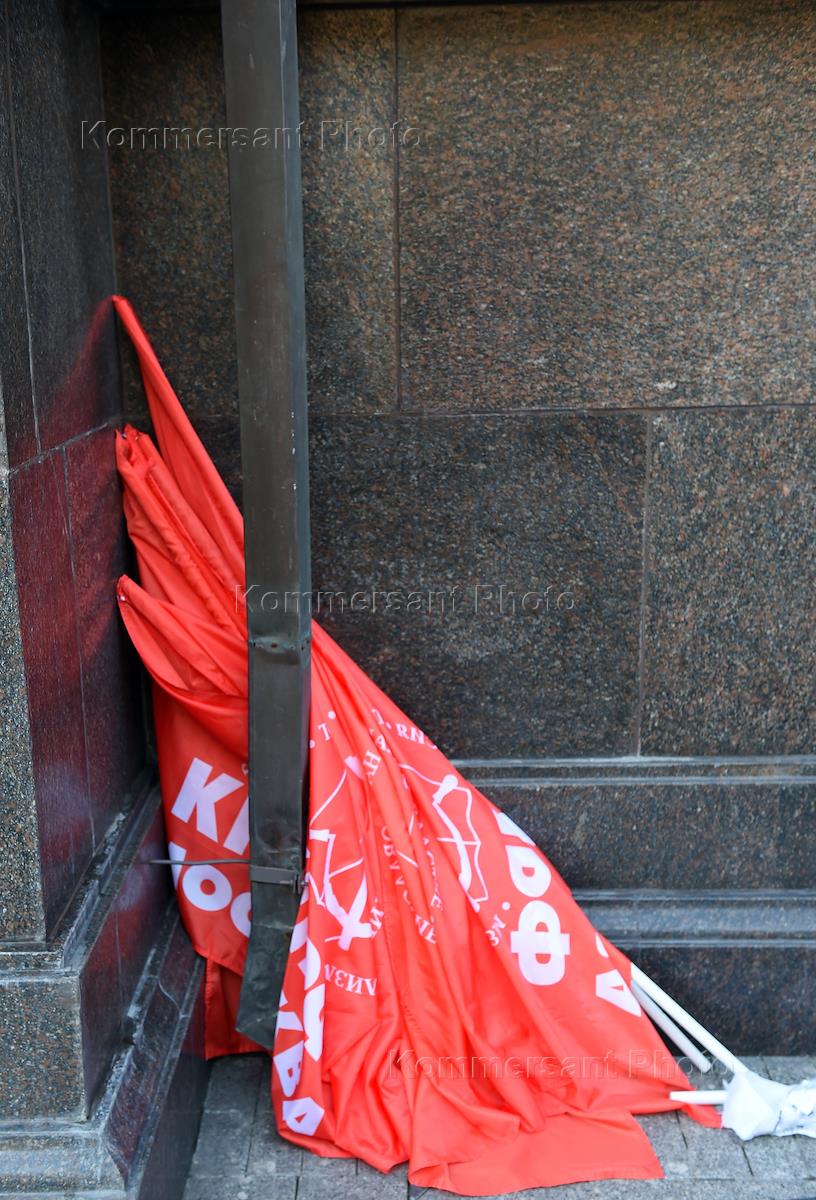 Жанровая фотография. Знамена КПРФ у здания Государственной думы России.