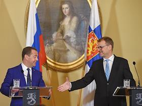 Рабочая поездка председателя правительства России Дмитрия Медведева в Хельсинки.