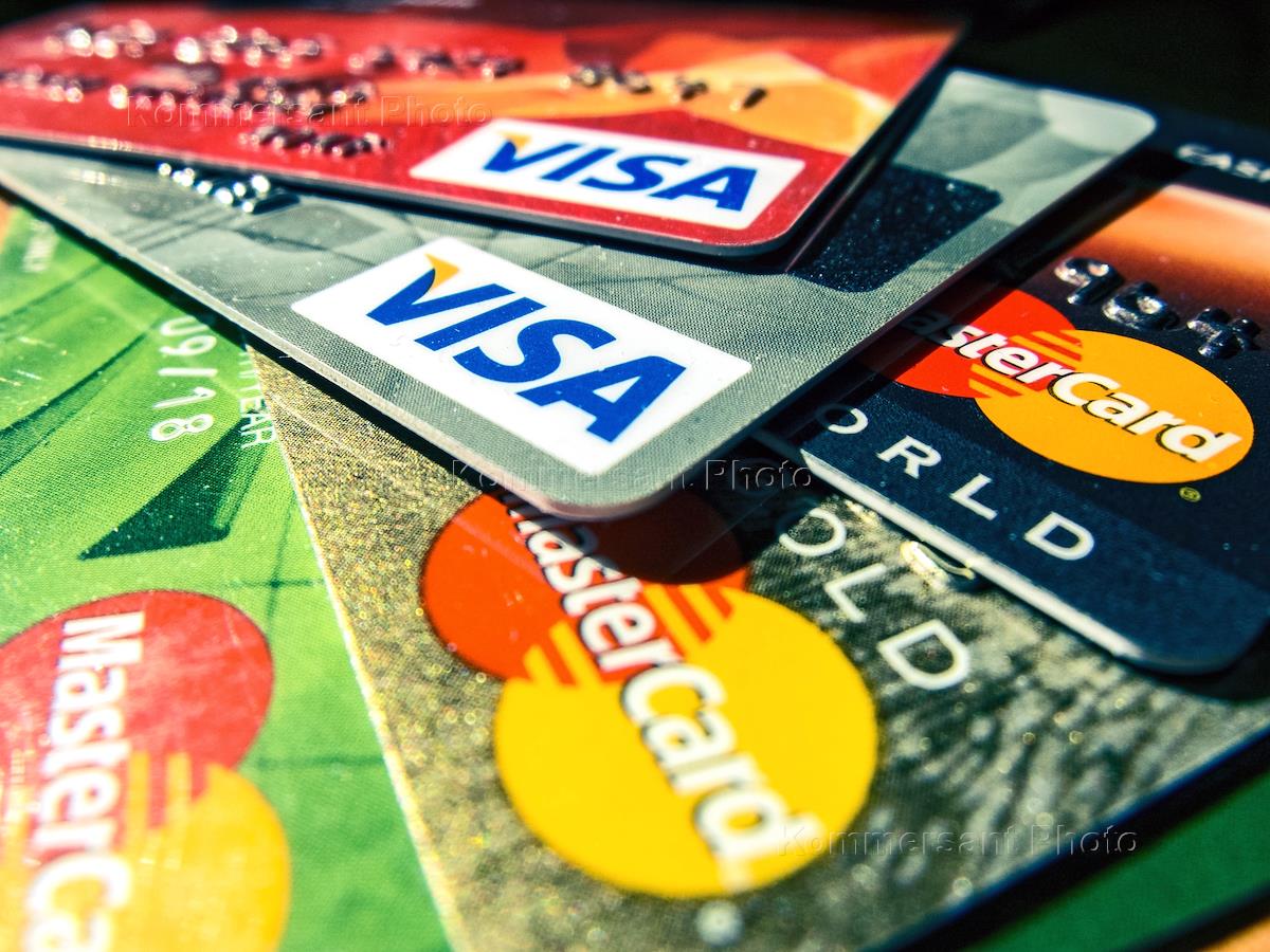 Жанровая фотография. Пластиковые карты Visa и MasterCard разных банков.