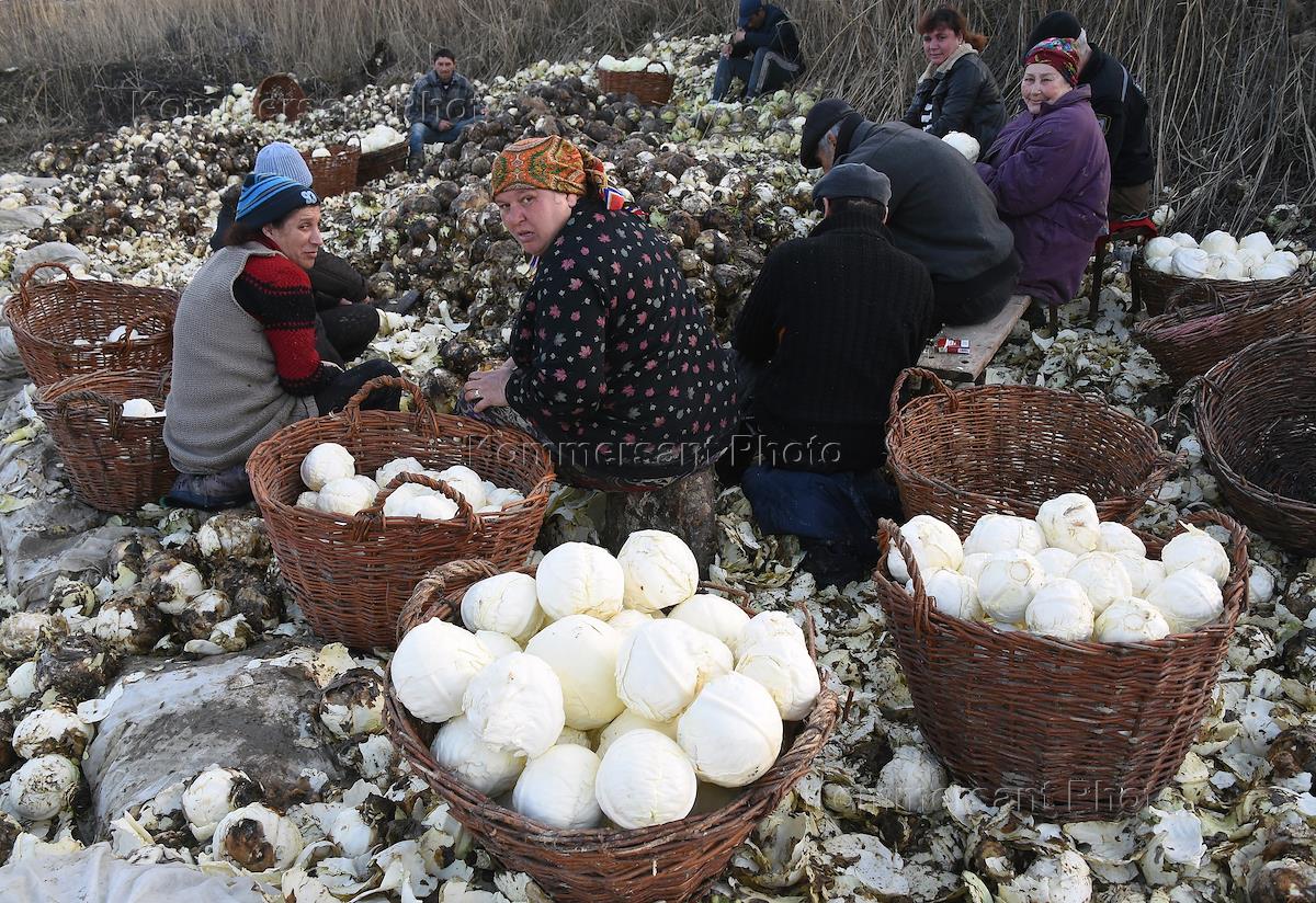 Жаноовая фотография. Женщины и мужчины во время переборки зимней капусты.