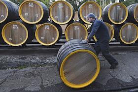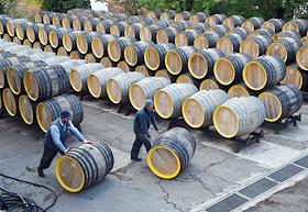 Федеральное государственное унитарное предприятие "ПАО "Массанра". Ряды бочек для "вызревания" вина…
