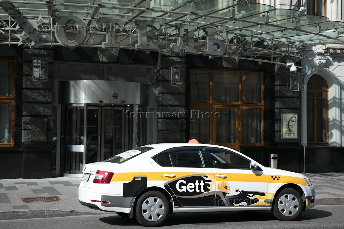 Жанровая фотография. Автомобиль такси Gett у подъезда отеля.