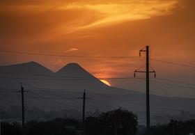 Рабочая поездка президента России Владимира Путина в Ставропольский край. Жанровая фотография. Закат…