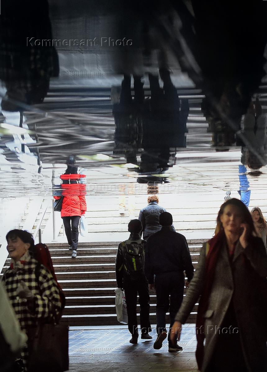 Жанровая фотография. Люди идут по подземному пешеходному переходу.