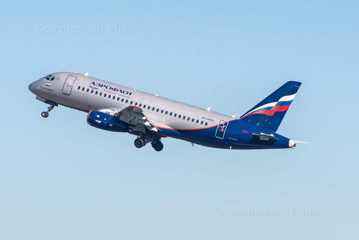Жанровая фотография. Пассажирский самолет Sukhoi Superjet 100 авиакомпании "Аэрофлот" во время…