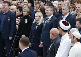 Глава Республики Крым Сергей Аксенов (справа) на церемонии прощания с погибшими в результате…