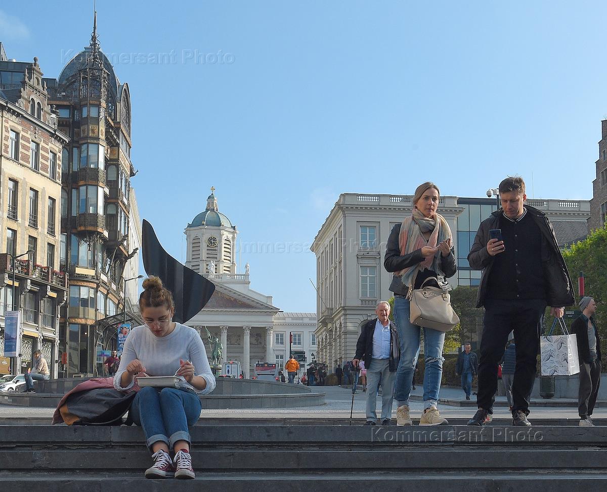 Виды Брюсселя. Скульптура, посвященная европейской валюте - евро у здания Европарламента.