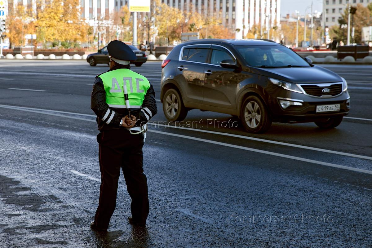 Виды Москвы. Жанровая фотография. Сотрудник дорожно-патрульной службы (ДПС) на Калужской площади.