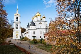 Виды Дмитрова. Памятник князю Юрию Долгорукому на площади. Дмитровский кремль. Успенский собор.