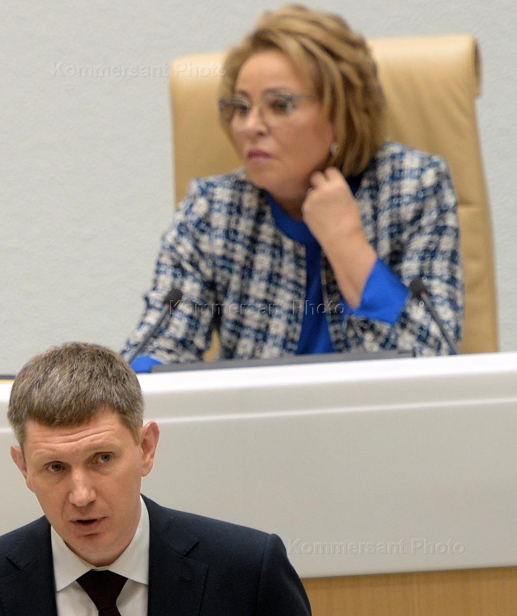 Пленарное заседание Совета Федерации (СФ) России. Справа налево: председатель СФ России Валентина…