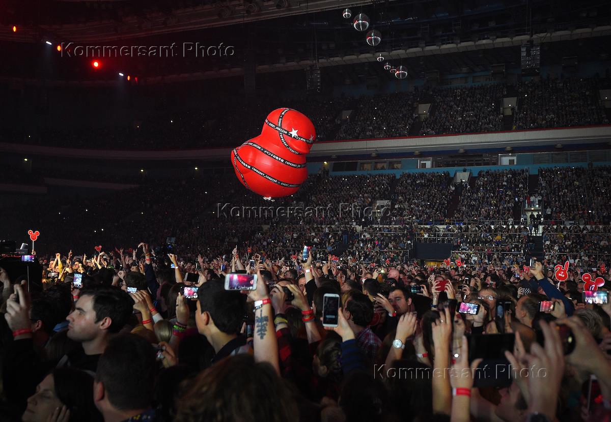 Концерт группы "БИ-2" прошел в спорткомплексе "Олимпийский". Зрители во время концерта.