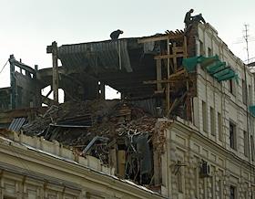 Снос старого жилого дома на улице Неглинной. Разборка бетонных конструкций.
