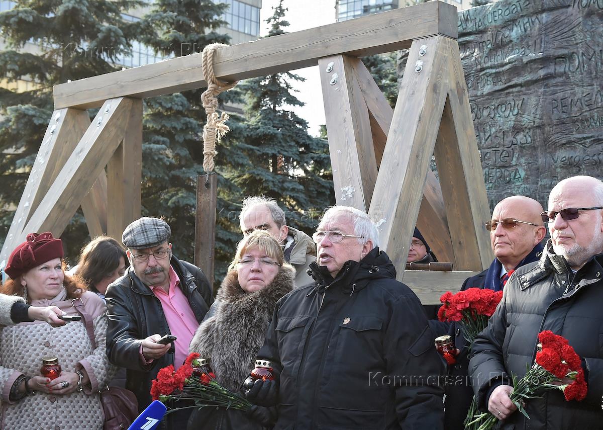 Акция "Колокол памяти", посвященная памяти жертв политических репрессий, прошла у мемориала "Стена скорби" на проспекте Академика Сахарова.