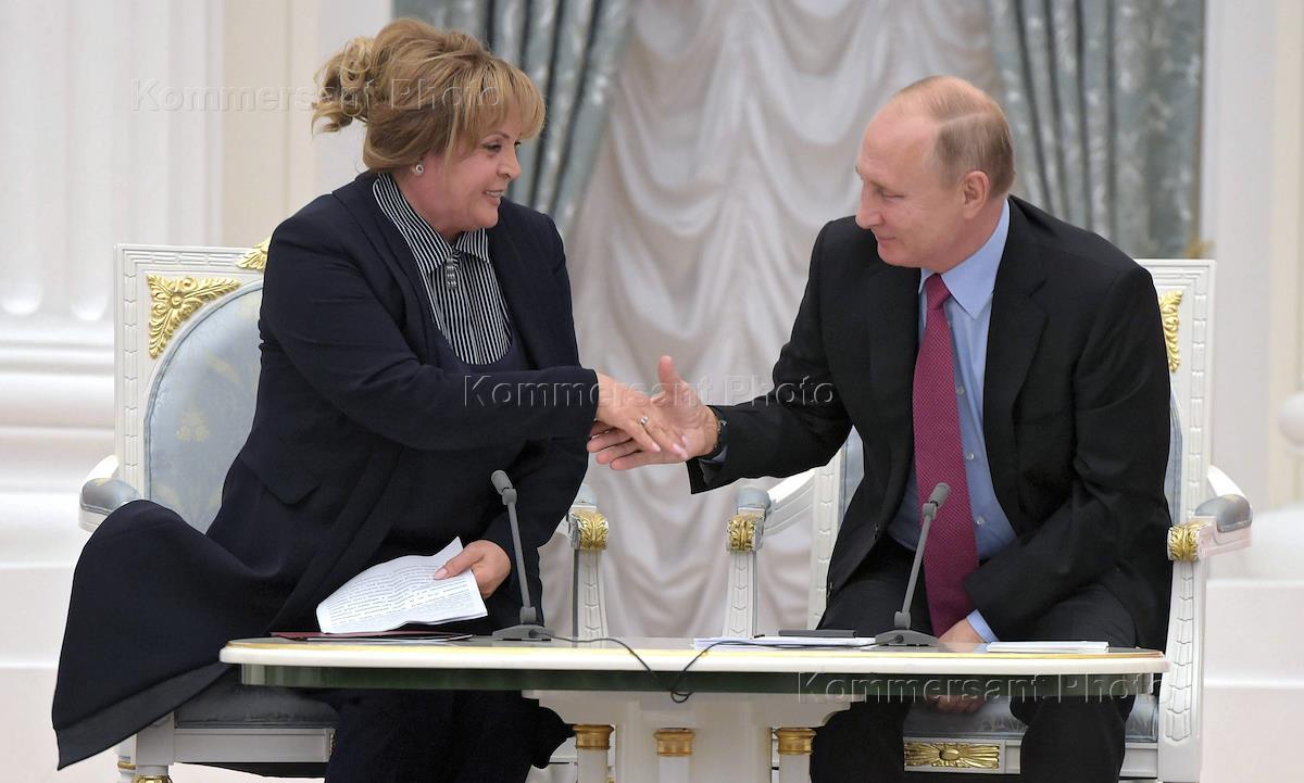 Президент России Владимир Путин (справа) и председатель Центральной избирательной комиссии России…