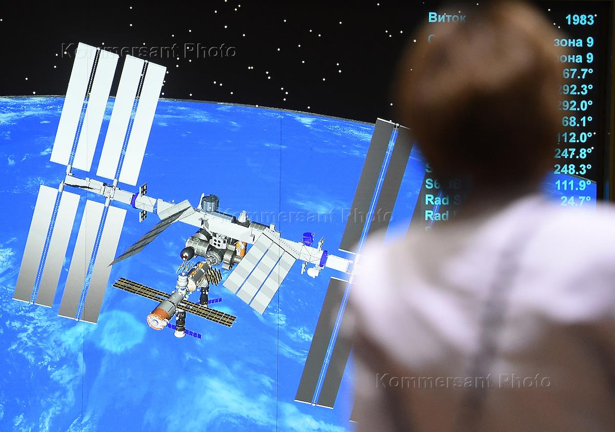 Специальный корреспондент телестудии "Роскосмоса" Наталья Бурцева в Центре управления полетами ФГУП…