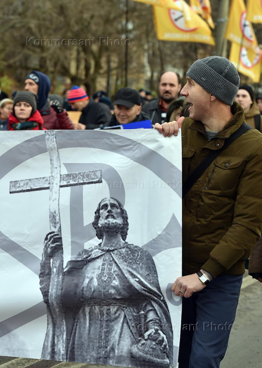 Участники акции националистов "Русский марш" во митинга.