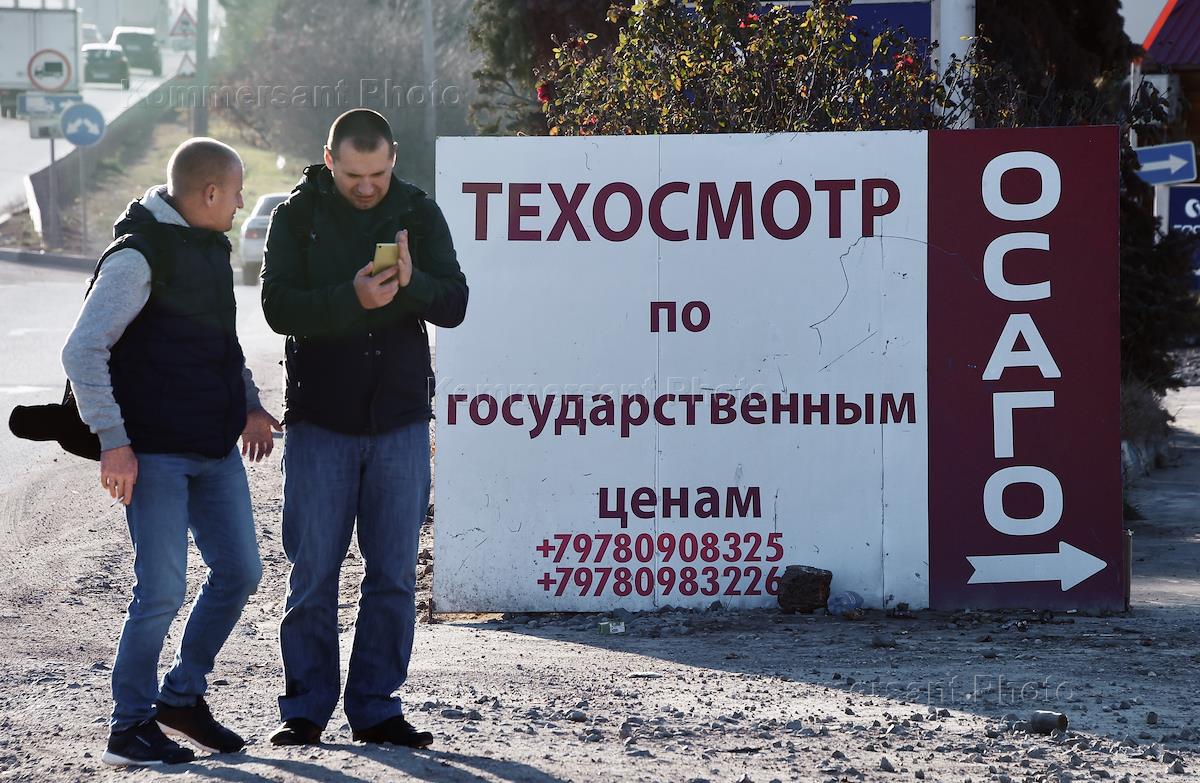 Жанровая фотография. Рекламный щит "Техосмотр по государственным ценам. ОСАГО".