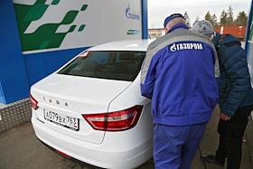 Легковой автомобиль Lada Vesta автоконцерна АвтоВАЗ . Газовая автозаправка.