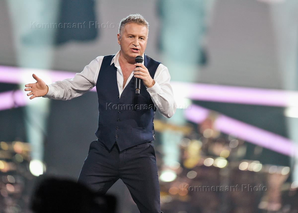 Певец Григорий Лепс во время выступления на юбилейном концерте Леонида Агутина в спорткомплексе…