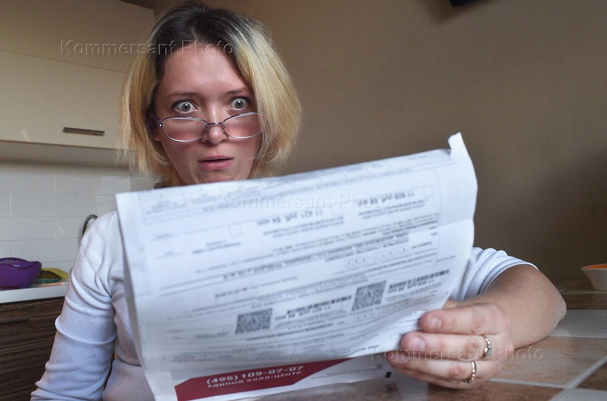 Жанровые фотографии на тему жилищно-коммунального хозяйства (ЖКХ). Женщина с платежной квитанцией по…