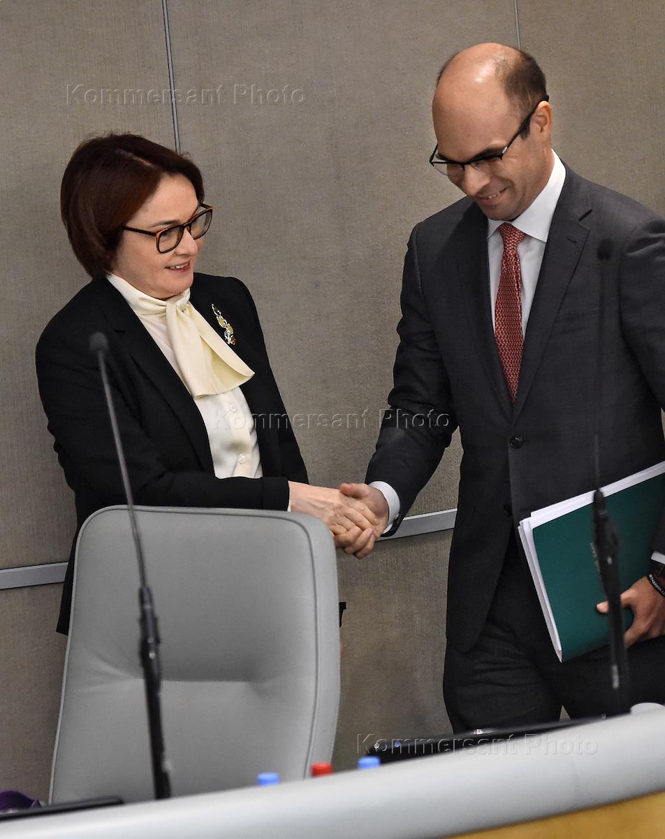Пленарное заседание Государственной думы (ГД) России. Председатель Центрального банка России Эльвира…