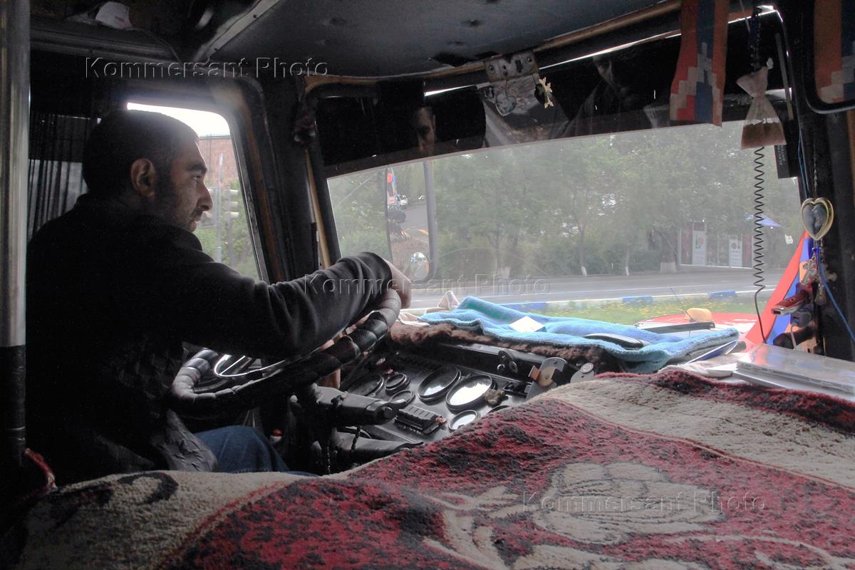 Жанровая фотография. Водитель маршрутки за рулем.