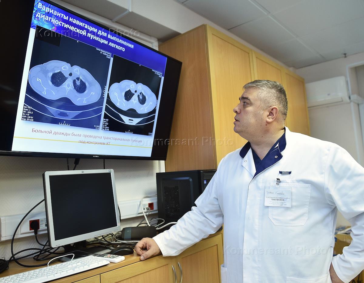 Специалист по раку легкого, Константин Константинович Лактионов во время интервью.