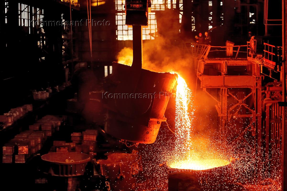 Волгоградский Металлургический завод "Красный Октябрь". Сталевары во время выплавки стали.