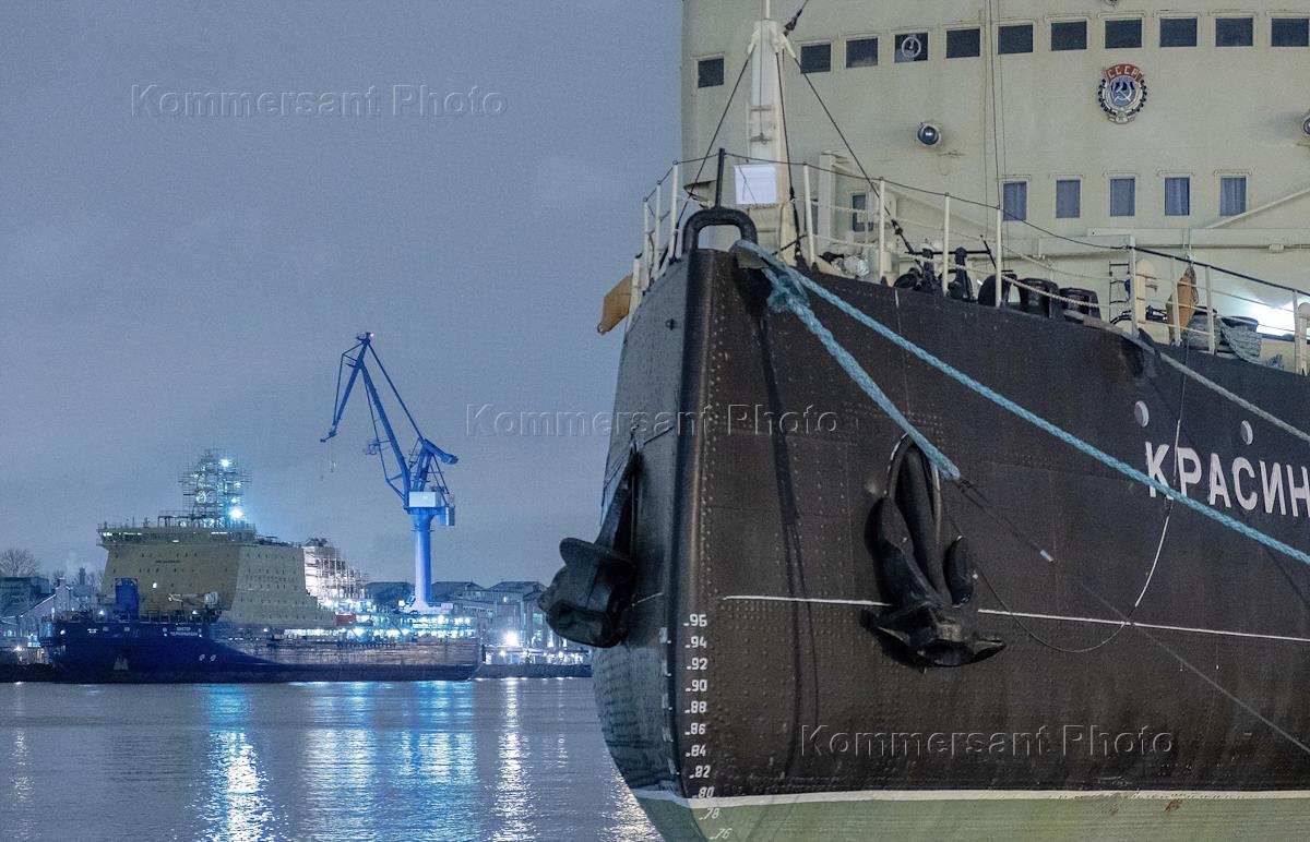 Пожар на ледоколе "Виктор Черномырдин" на Адмиралтейских верфях в Санкт-Петербурге.