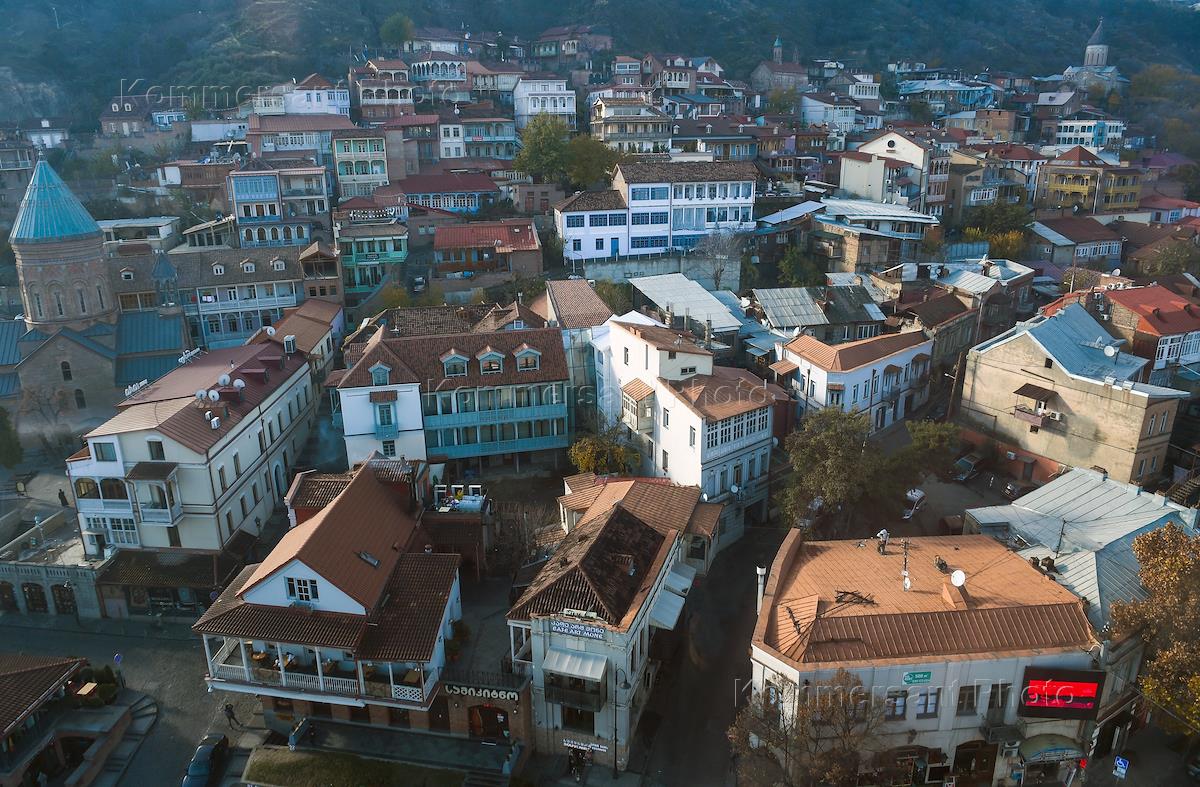 Виды Тбилиси. Кабинка Тбилисской канатной дороги над городом.