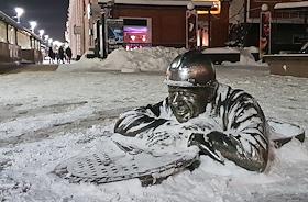 Виды Омска. Скульптура "Слесарь Степаныч" (1998, скульптор Норышев). Памятник водопроводчику,…